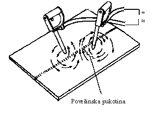 ticama i indikacija površinske pukotine.U praksi se pored magnetskih jarmova često koriste i odvojene elektrode (slika 12).