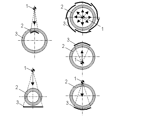 Shematski prikaz radiografske kontrole zavarenih spojeva na cilindričnim elementima