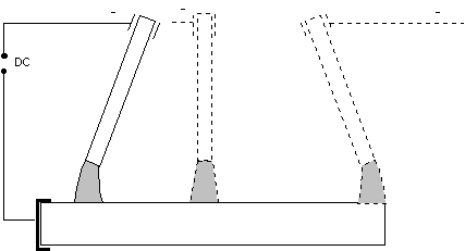 Otklon elektrode u smjeru “puhanja” luka. Električni luk se dovodi u vertikalni položaj.