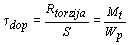 t dop ...dopušteno naprezanje na torziju,
