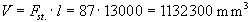 Volumen žlijeba za duljinu zavara od l = 13 000 mm: