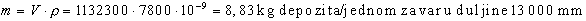 Masa zavara za jedan zavar duljine 13 000 mm: